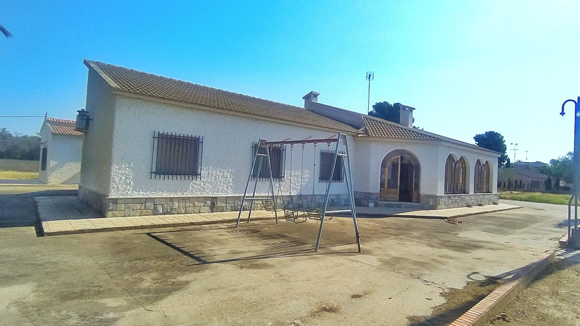 Descubre este encantador chalet de estilo mediterráneo en venta, situado en la hermosa pedanía de Elche, específicamente en la tranquila zona de Llano de San José. Con una generosa superficie construida de 288 m² sobre un extenso terreno que abarca nada menos que 3.725 m², rodeado de vecinos,esta propiedad te ofrece múltiples posibilidades para crear el hogar ideal o disfrutar al aire libre con amigos y familiares.