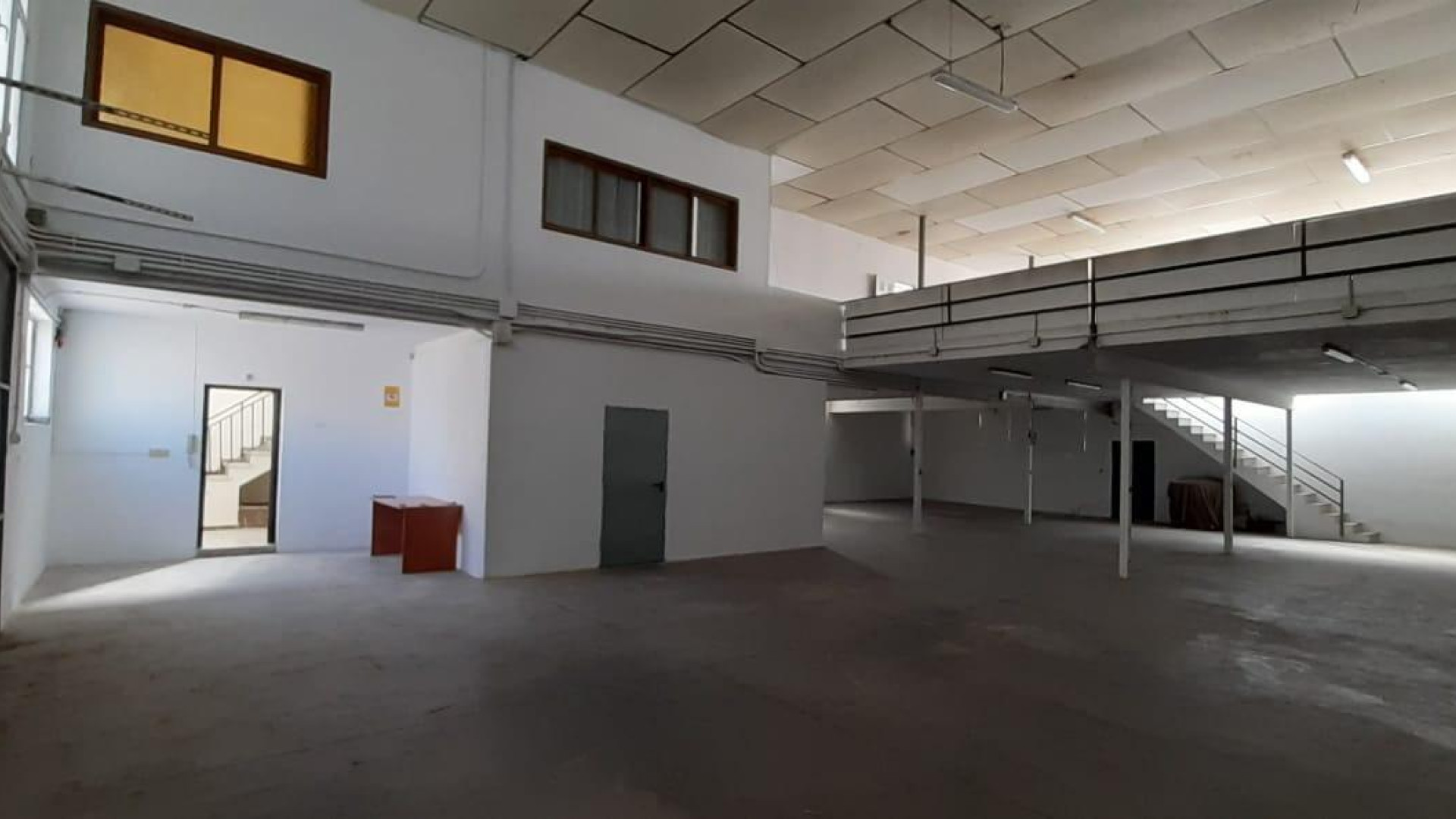 Nave industrial en Elche pedanías zona La galia, Tiene 640m2 en planta y 245m2 en planta superior. dispone de luz trifásica, recién pintada. diáfana con 2 oficinas y baños.