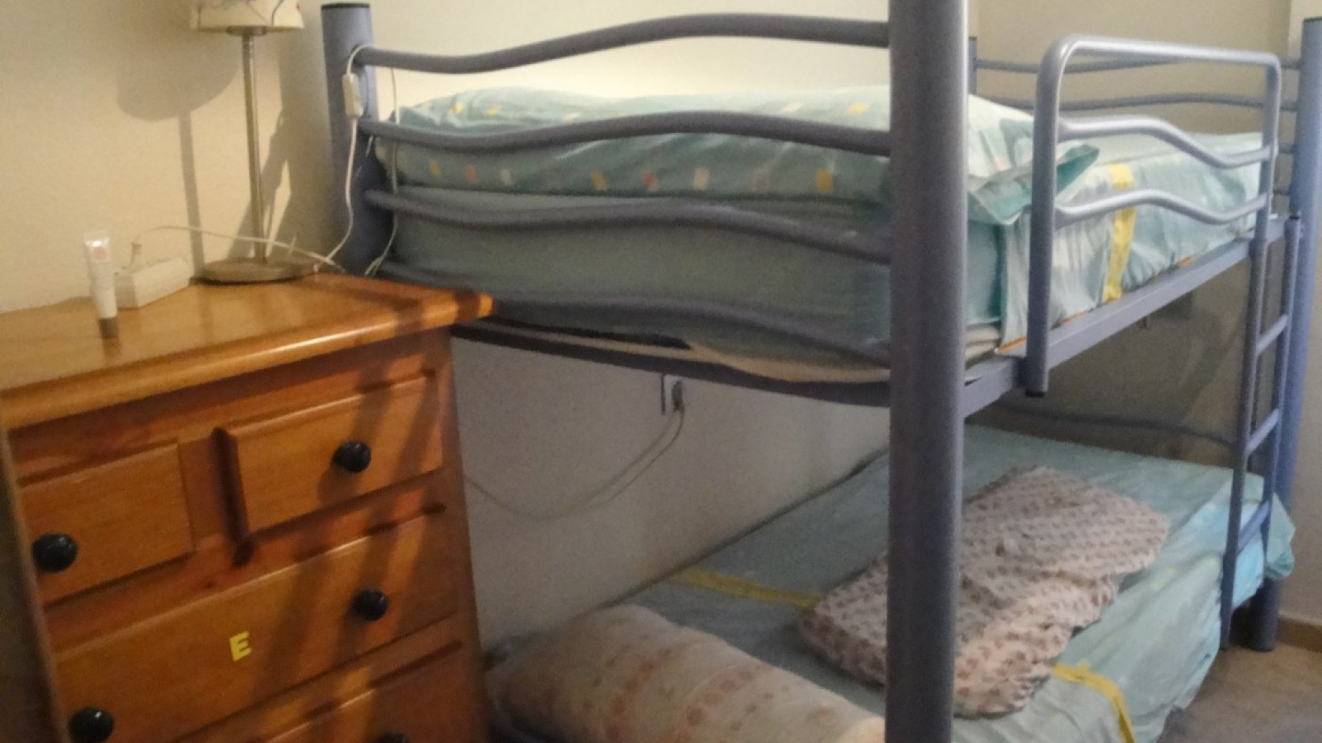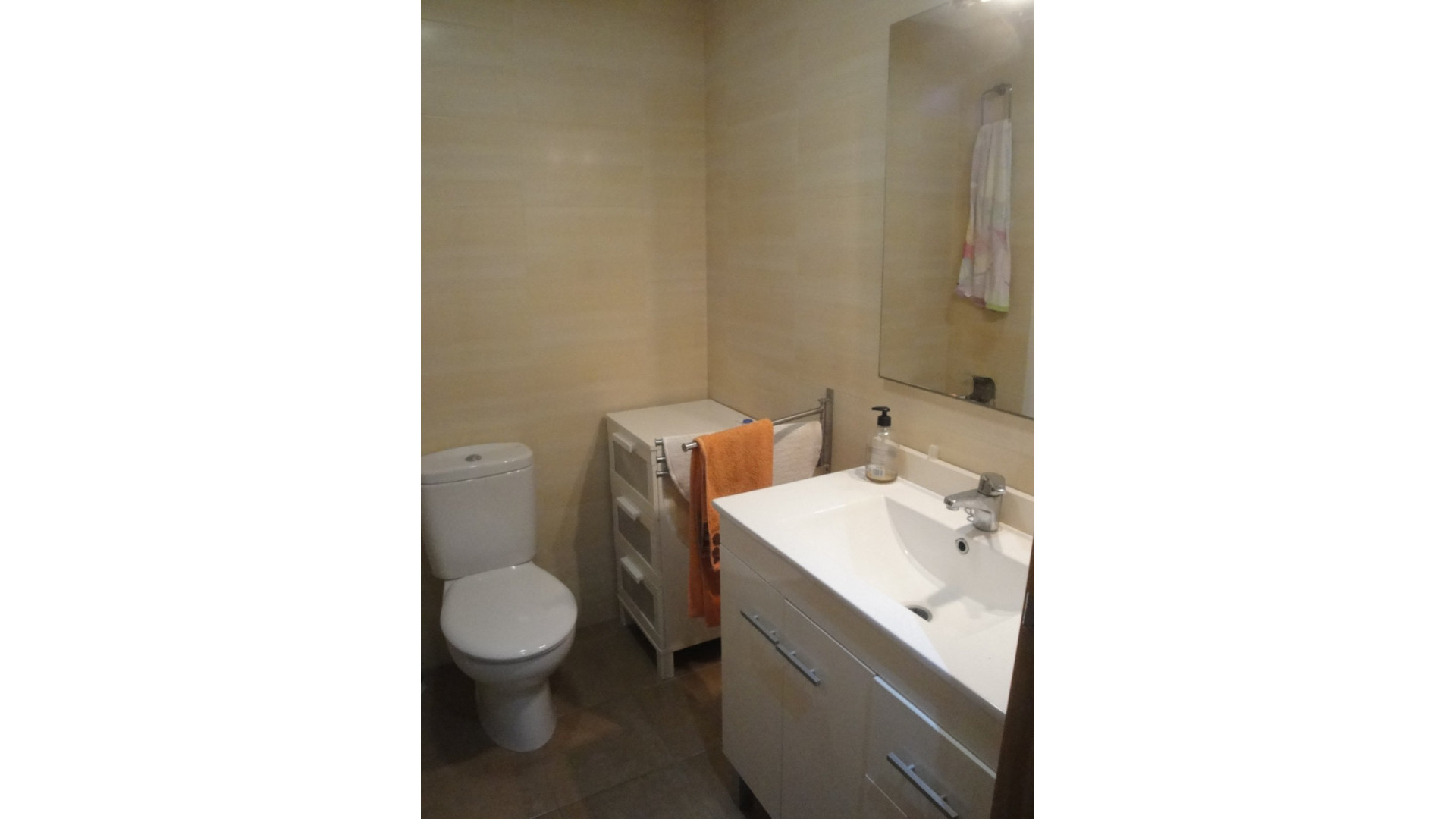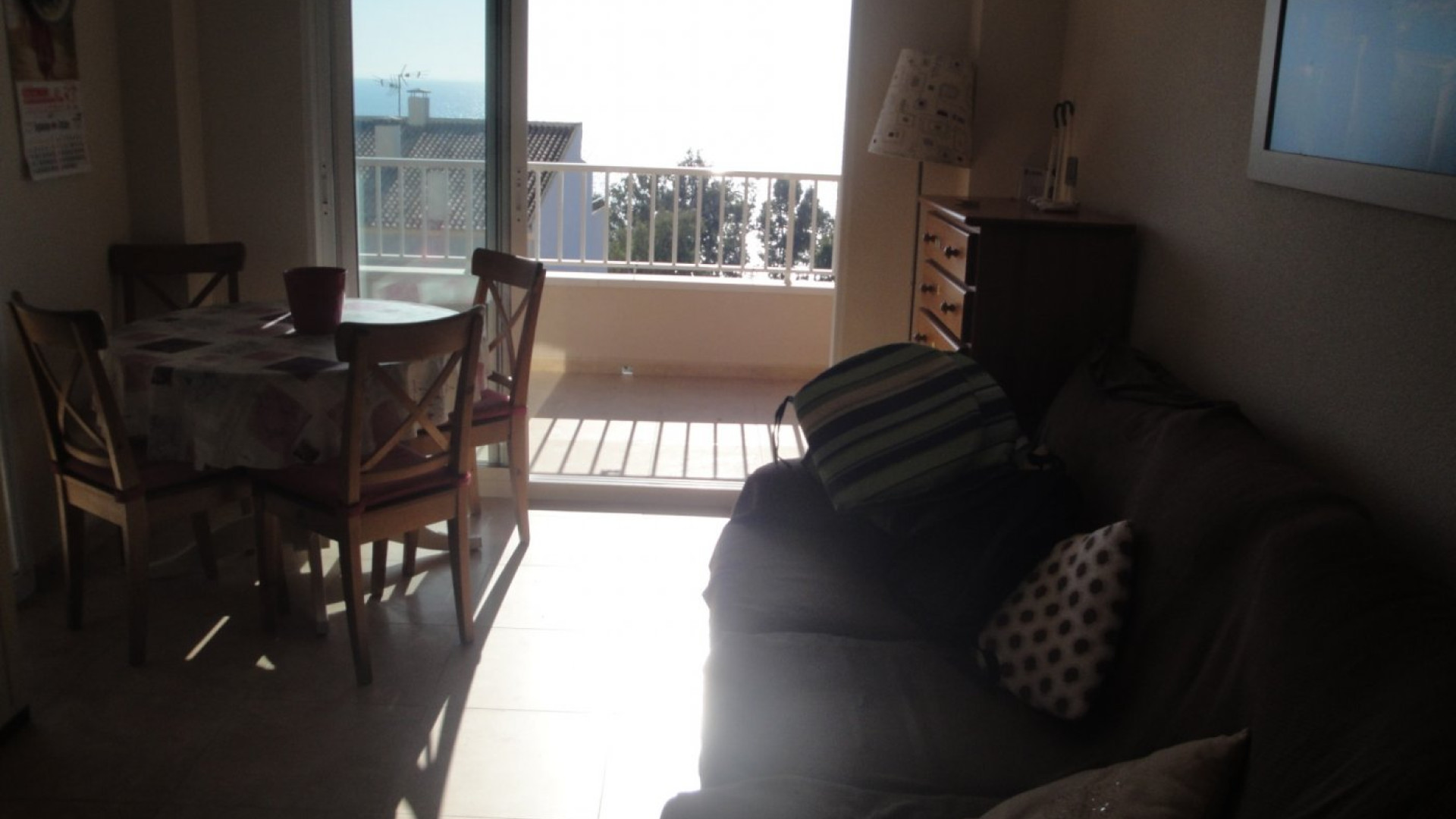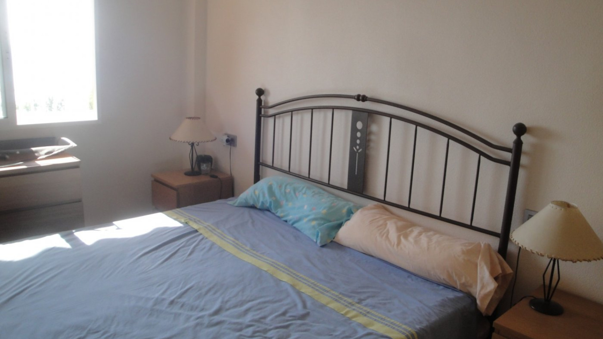 Piso en alquiler de temporada de Septiembre a Junio en Santa Pola zona Santa pola del este, 90 m. de superficie, 15 m2 de terraza, 2 habitaciones dobles y una habitación sencilla, 2 baños, propiedad en buen estado, cocina equipada, orientación sur, suelo de gres, carpintería exterior de aluminio.